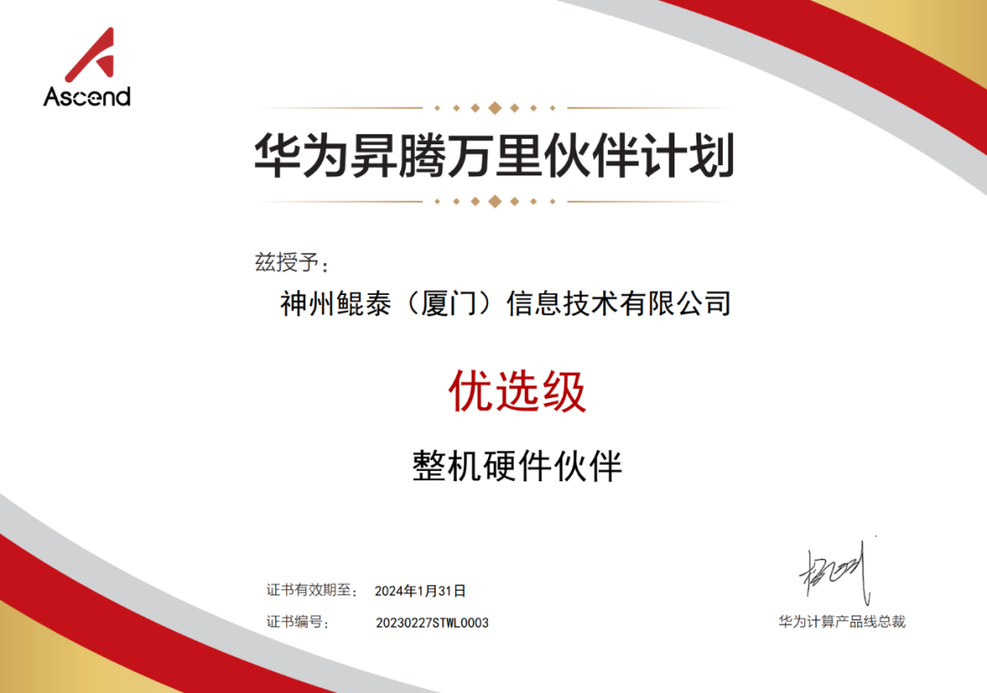 近日,mile米乐集团团数码旗下神州继获得华为鲲鹏领先级整机硬件伙伴认证之后,再获华为昇腾优选级整机硬件伙伴认证!这是神州与华为昇腾深化合作的硕果,也代表mile米乐集团集团数码信创业务在AI领域获得生态伙伴的充分认可。